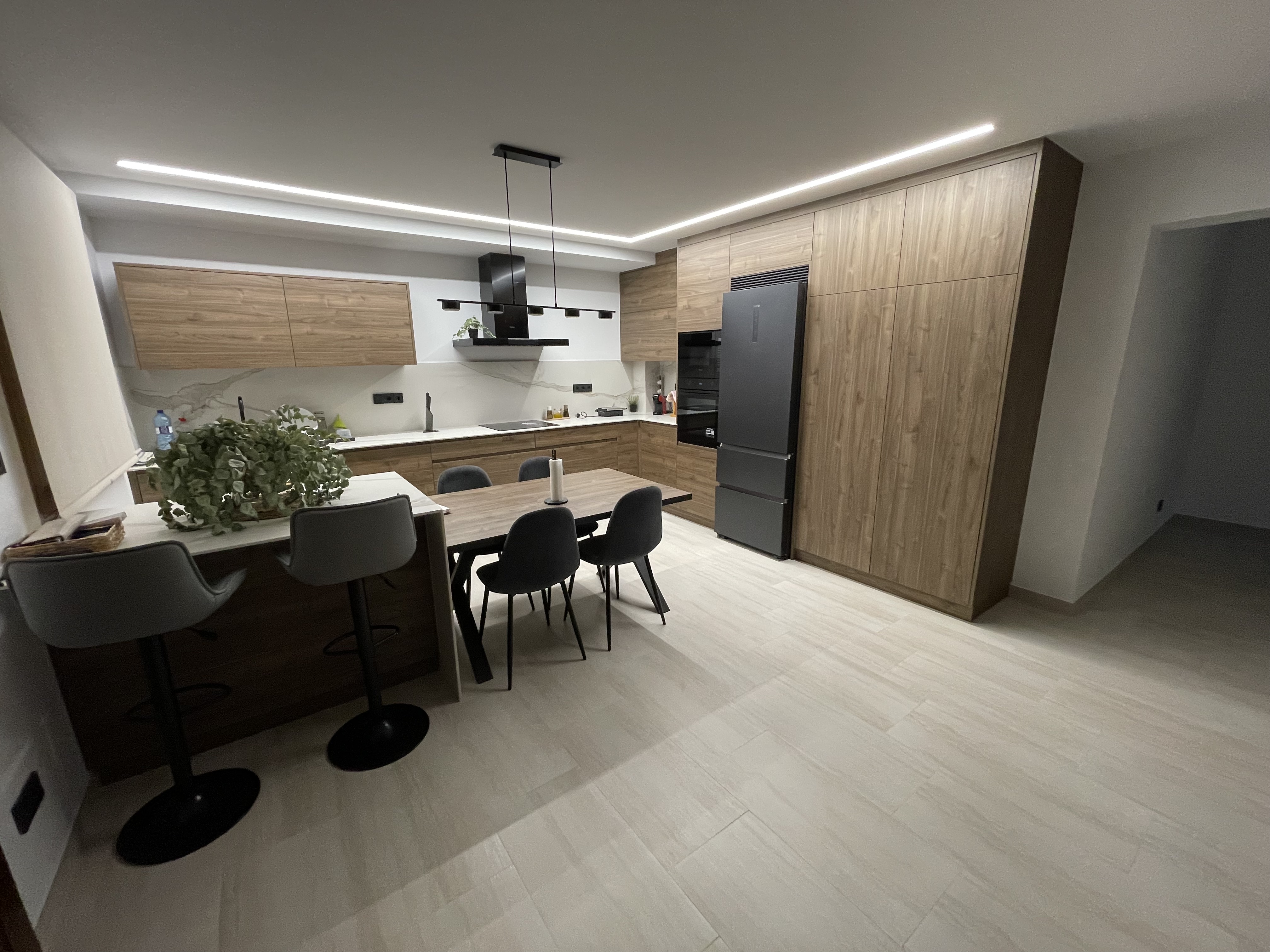 Instalación completa de iluminación LED en vivienda unifamiliar: puntos de luz, tiras LED, downlights y cableado eléctrico.